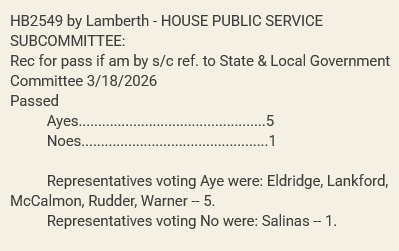 Democrat Gabby Salinas was the only member of the House Public Service Subcommittee to vote “No”, leaving the result 5-1 in favor. The bill will progress to the House State and Local Government Committee at a date yet to be determined, and the Senate State and Local Government Committee is scheduled to hear the companion next week.