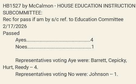 Sponsored by Representative Jake McCalmon (R-Franklin-District 63), House Bill 1527 (HB1527) now advances to the House Education Committee.