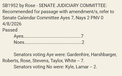 The vote was 7-2 along party lines in favor of sending SB1952 to the Senate Calendar Committee to secure a date for a floor vote.