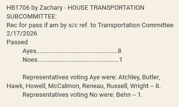 Both bills passed by the subcommittee, HB1706 and HB1708, will now head to the full House Transportation Committee.
