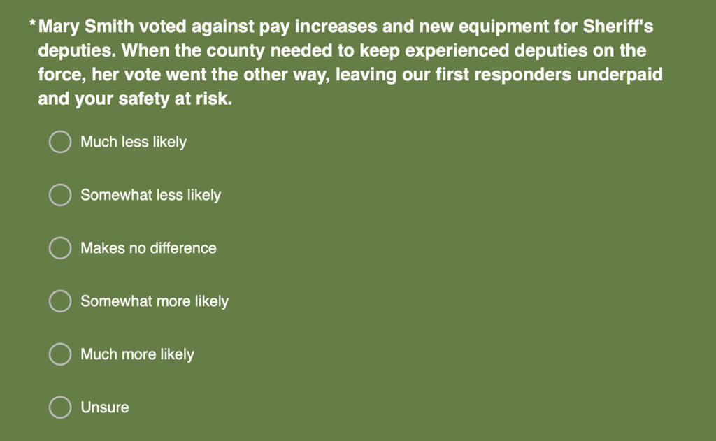 For those unfamiliar, a push poll is a survey that appears to be seeking input from citizens about election issues. In reality, it is designed to influence voters’ opinions under the guise of gathering information about public opinion.
