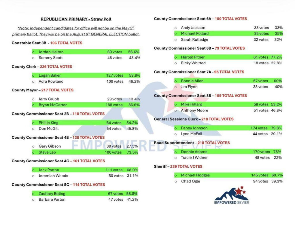 “We were amazed with the response from the community for our 2026 Candidate Convention! We had an estimated 400 people attend, which is almost double our attendance from our 2022 candidate convention. Educating the public on elections and the candidates and providing a venue to connect voters with candidates face-to-face is critical to keeping our republic. I am proud to say that Empowered Sevier is there to fulfill that need in Sevier County.” – said Kelli O’Connor, Empowered Sevier Organizer