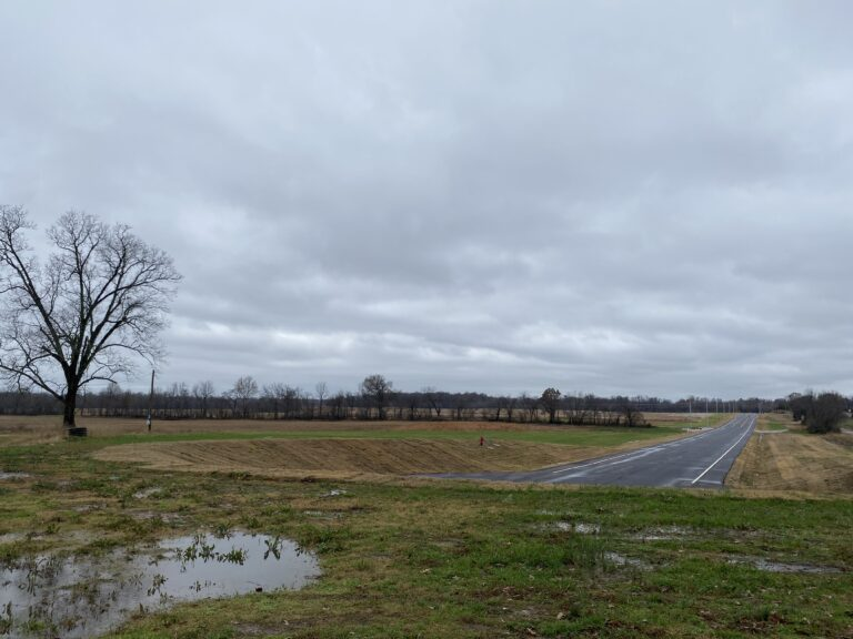 Image: A road leads to a bare plot of land prepped to be part of the I-40 Advantage Industrial Park in Brownsville, Tenn. Enchem America, Inc. planned to build a $152 million electrolyte manufacturing facility at the industrial park, but backed out of the agreement in September 2025. Image Credit: Cassandra Stephenson