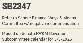 Senate Finance, Ways, and Means Committee – SB2347 hearing date to be determined