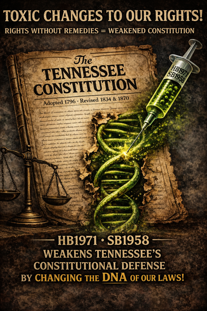 2. No, HB1971 and SB1958 would not change the “DNA” of Tennessee’s constitutional rights. They would not amend the Tennessee Constitution (or the U.S. Constitution). Substantive rights—such as those in the Tennessee Declaration of Rights (free speech, bearing arms, due process, open courts, etc.)—remain exactly the same. They would, however, change Tennessee statutory law in a significant procedural way.