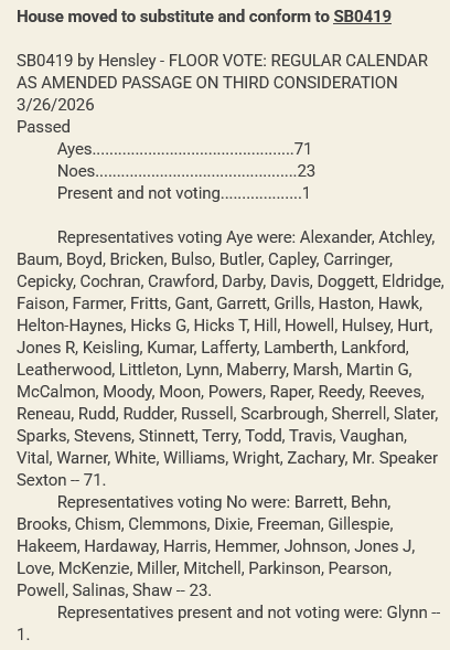 As the House conformed to the Senate version of the bill which was passed last year, it will now proceed to Gov. Lee’s desk for signature into law.