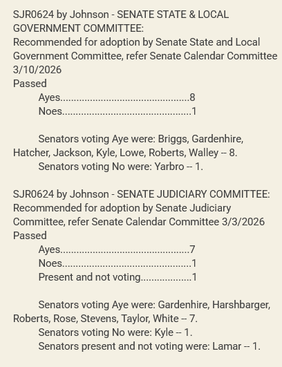 SJR0624 has already passed through two Senate committees and was read on the Senate floor for the second time on Monday, passing without objection on second consideration. The bill will now have to be read and passed by the body once more before being officially declared “passed” and transmitted to the House for its consideration. It has been set on the Senate calendar for Thursday, March 19.