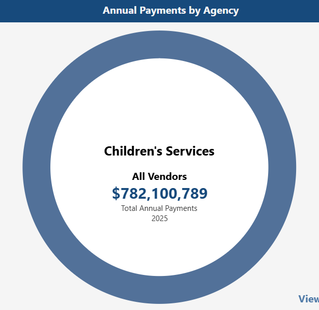 For those who believe that DCS operates as government services for children, the Tennessee Checkbook tells a different story. For the last fiscal year, Tennessee taxpayers paid $782,100,789 to vendors to provide services for children through DCS.