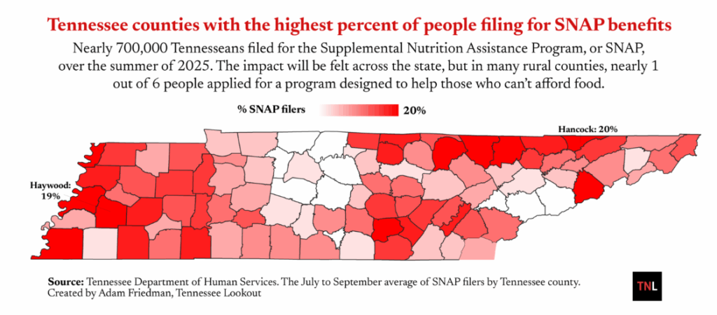 About 690,000 Tennesseans living in poverty, nearly half of them children, rely on the SNAP to buy food; in total, Tennessee distributes $145 million in SNAP benefits each month.