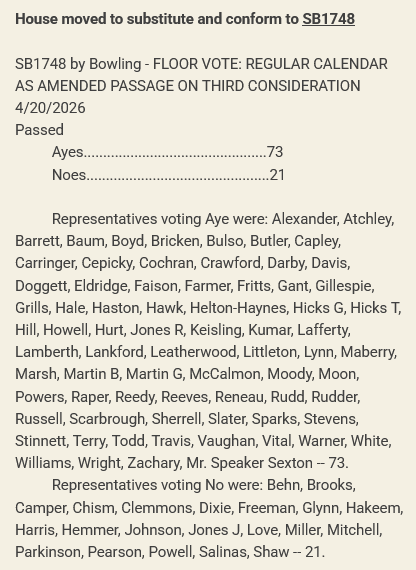 SB1952 will now proceed to Gov. Lee’s desk for signature into law.