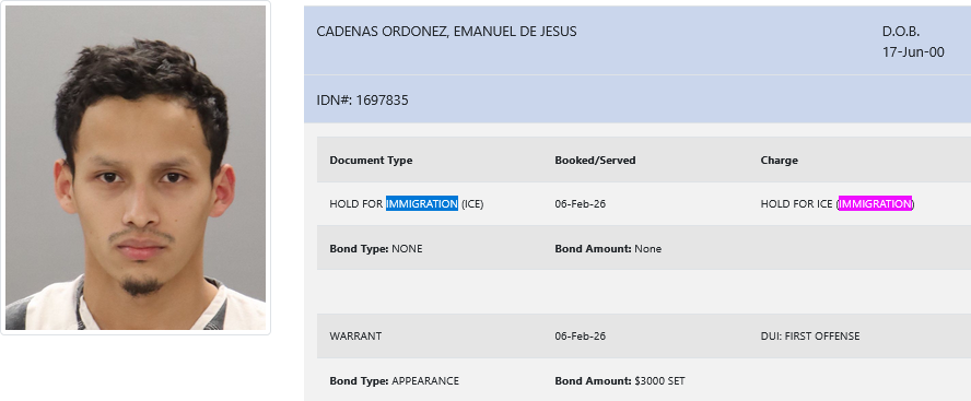 25-year-old Emanuel De Jesus Cadenas Ordonez – arrested February 6