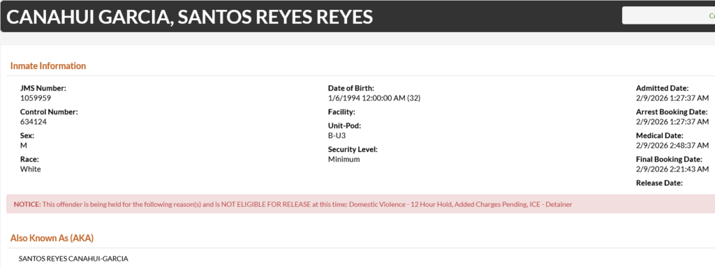 32-year-old Santos Reyes Reyes Canahui Garcia – arrested February 9