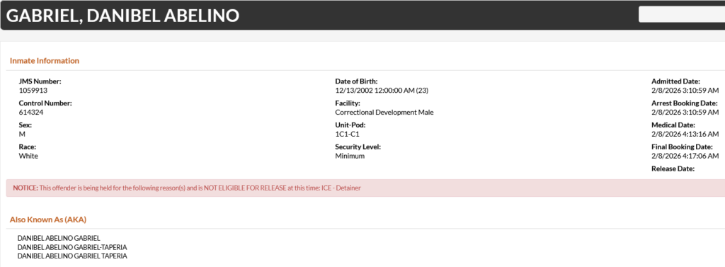 23-year-old Danibel Abelino Gabriel – arrested February 8
