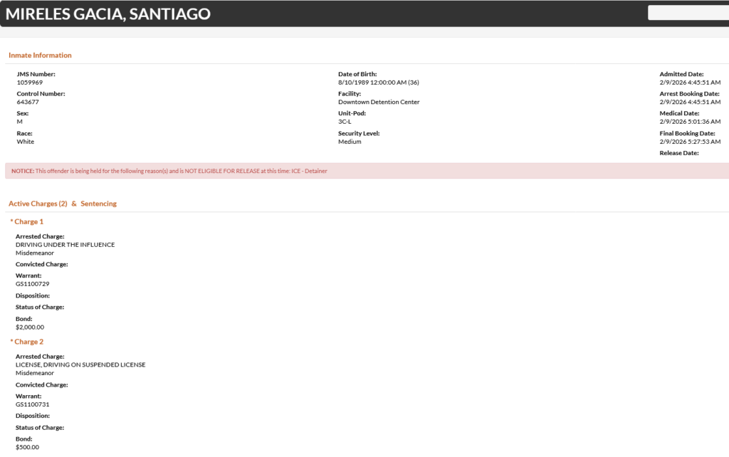 36-year-old Santiago Mireles Gacia – arrested February 9