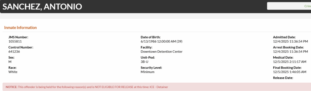 39-year-old Antonio Sanchez – arrested December 4