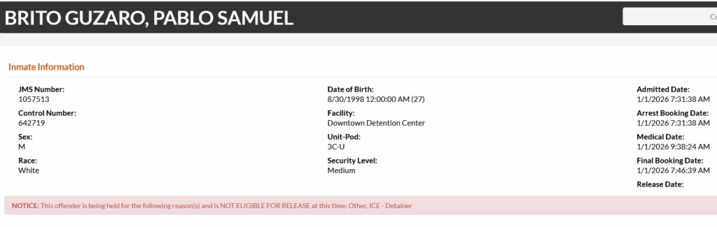 27-year-old Pablo Samuel Brito Guzaro – arrested January 1
