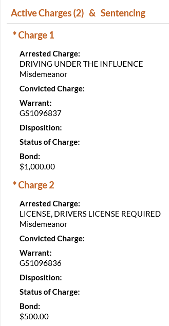 - Guzaro was charged with driving under the influence and driver’s license required. He was booked on a $1500 total bond.