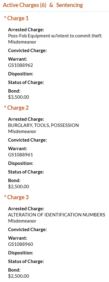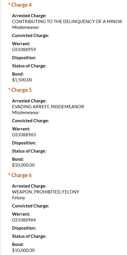 Also arrested in Davidson County on October 16 was 18-year-old Gelson Verela Dubon. Dubon was charged with possession of equipment with intent to commit theft, possession of burglary tools, alteration of identification numbers, felony possession of a prohibited weapon, evading arrest, and contributing to the delinquency of a minor. He was booked on a total $30,000 bond.