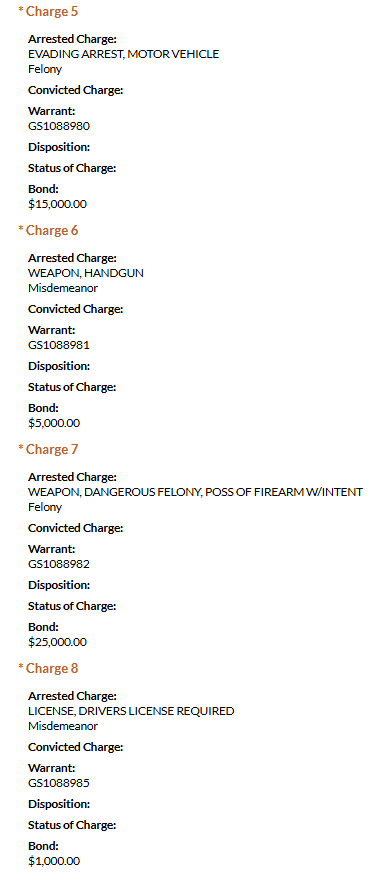 Police arrested 22-year-old Carlos Caceres on Thursday, October 16. Caceres was charged with possession of cocaine, possession/casual exchange of a controlled substance, evading arrest in a motor vehicle, possession of a weapon during a dangerous felony, and failure to appear. The FTA charge was in relation to a felony charge of aggravated assault (strangulation) that occurred in May 2024.