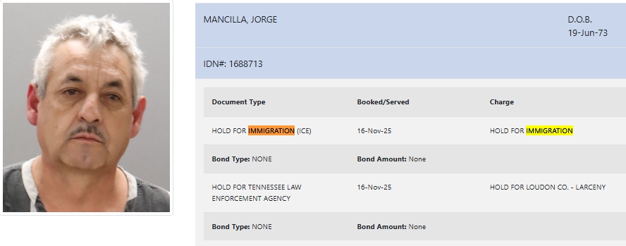 - Mancilla was booked to be held for Loudon County on a larceny charge. He also faces charges of financial responsibility law and driving while license suspended.