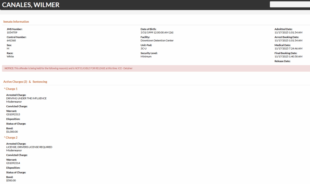26-year-old Wilmer Canales – arrested November 17
