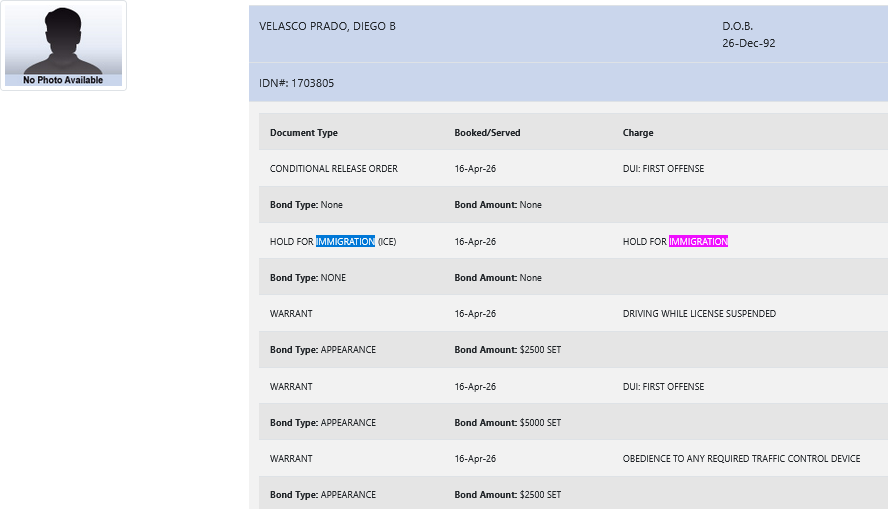 33-year-old Diego B. Velasco Prado – arrested April 16