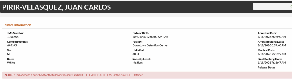 29-year-old Juan Carlos Pirir-Velasquez – arrested January 18