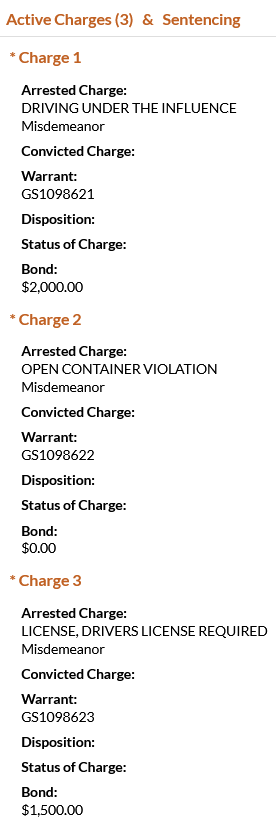 - Pirir-Velasquez was charged with driving under the influence, open container violation, and driver’s license required. He was booked on a $3500 bond.