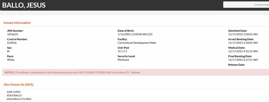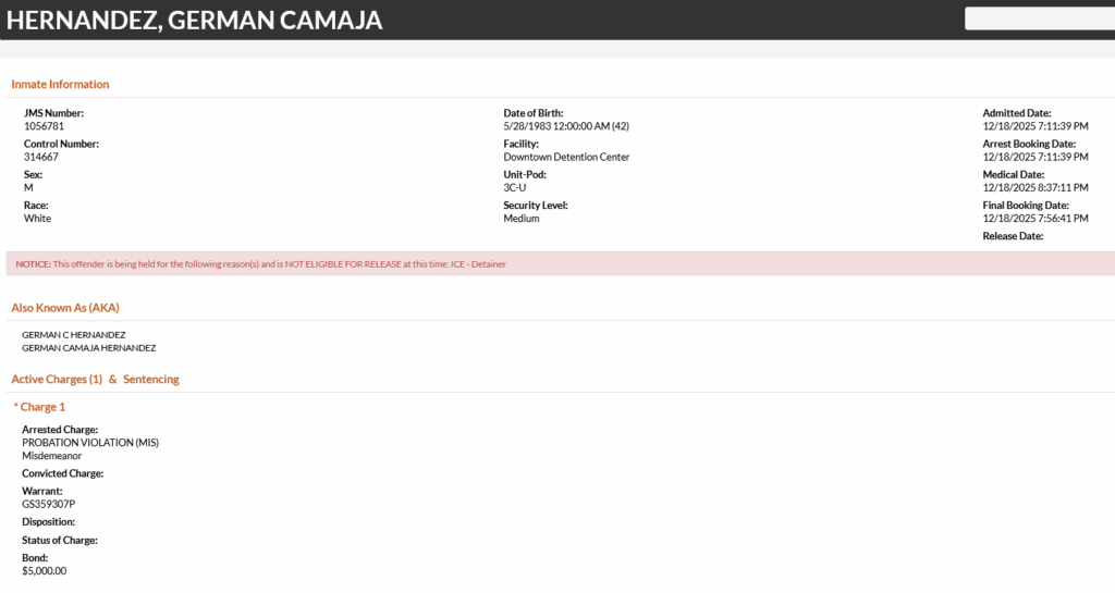 26-year-old Jonathan Isaias Chirino Gomez – arrested December 17