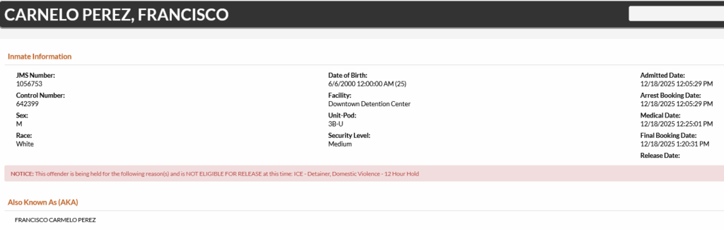 25-year-old Francisco Carnelo Perez – arrested December 18