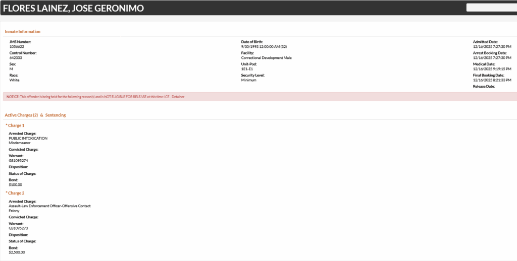 32-year-old Jose Geronimo Flores Lainez – arrested December =16