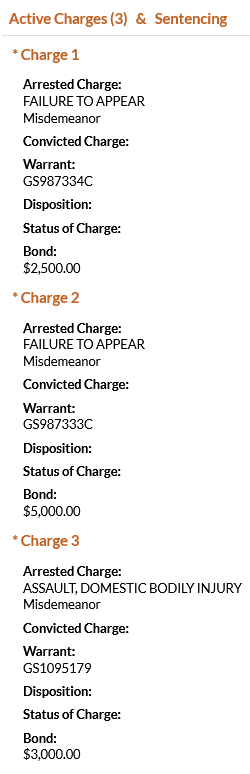 - Tiul was charged with two counts of failure to appear and one count of domestic assault with bodily injury. He was booked on a $10,500 bond. The failure to appear charges stem from two 2023 charges of DUI and no driver’s license.
