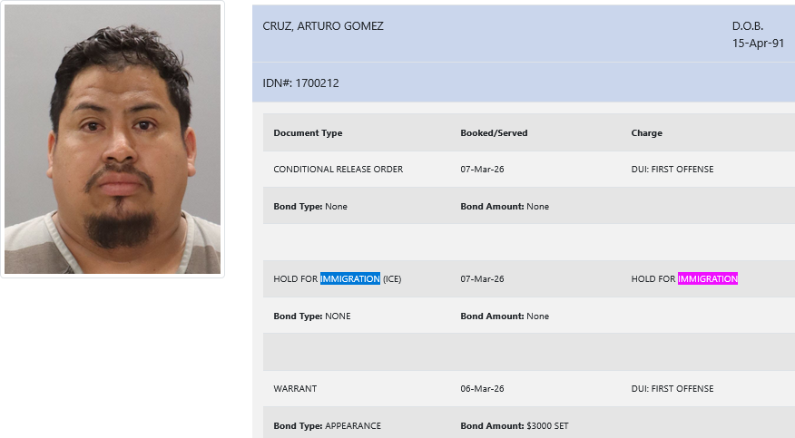 34-year-old Arturo Gomez Cruz – arrested March 6