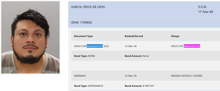 36-year-old Erick De Leon Garcia – arrested March 14