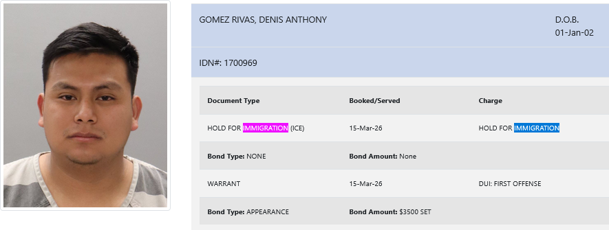 24-year-old Denis Anthony Gomez Rivas – arrested March 15