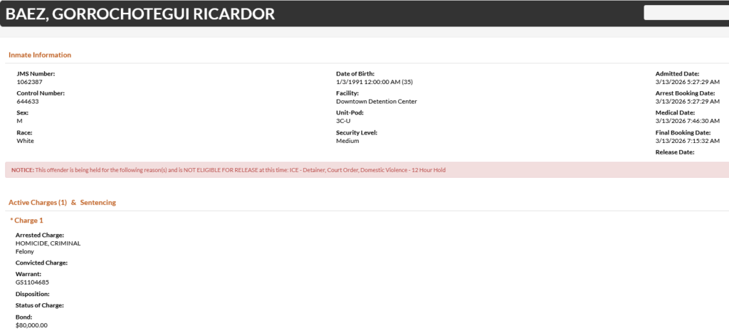 35-year-old Gorrochotegui Ricardor Baez – arrested March 13