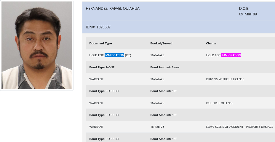 36-year-old Rafael Quiahua Hernandez – arrested February 16