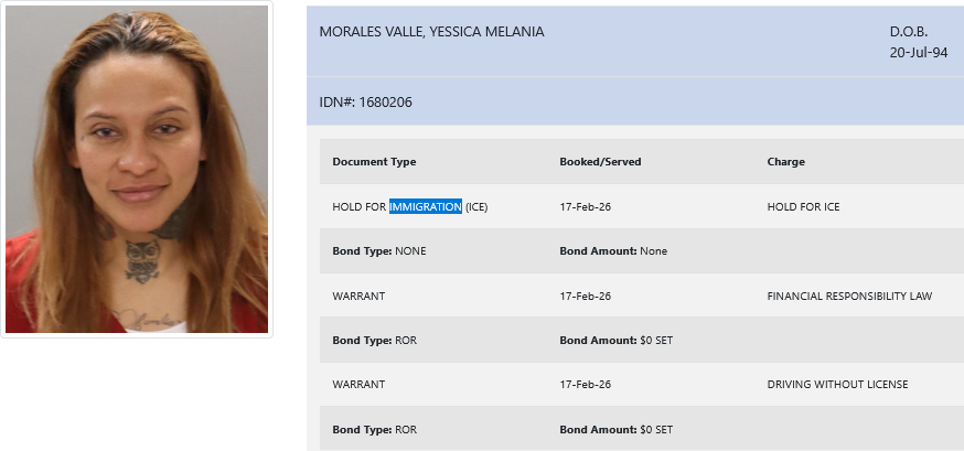 31-year-old Yessica Melania Morales Valle – arrested February 17