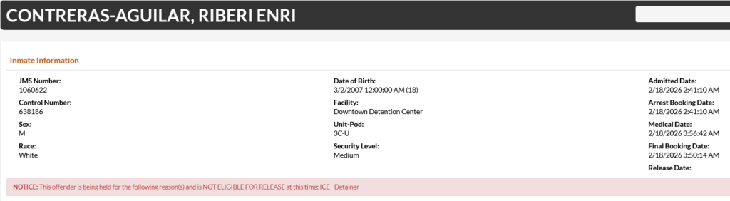 18-year-old Riberi Enri Contreras-Aguilar – arrested February 18