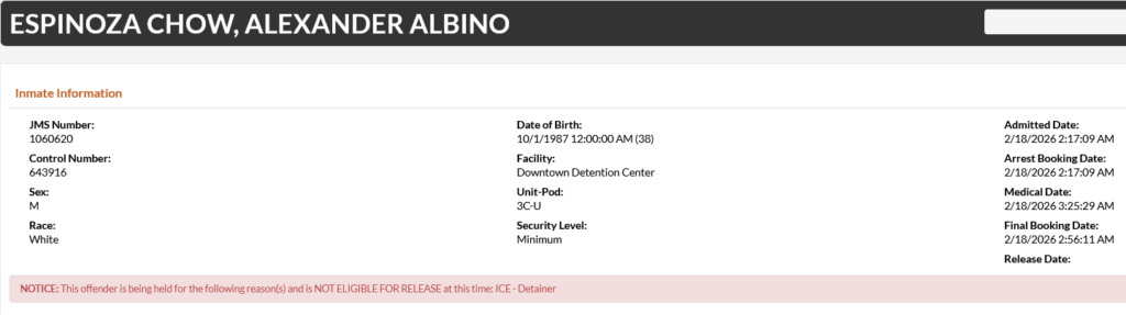 38-year-old Alexander Albino Espinoza Chow – arrested February 18
