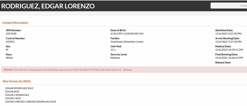34-year-old Edgar Lorenzo Rodriguez – arrested December 6