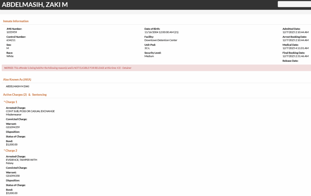 21-year-old Zaki M. Abdelmasih – arrested December 7
