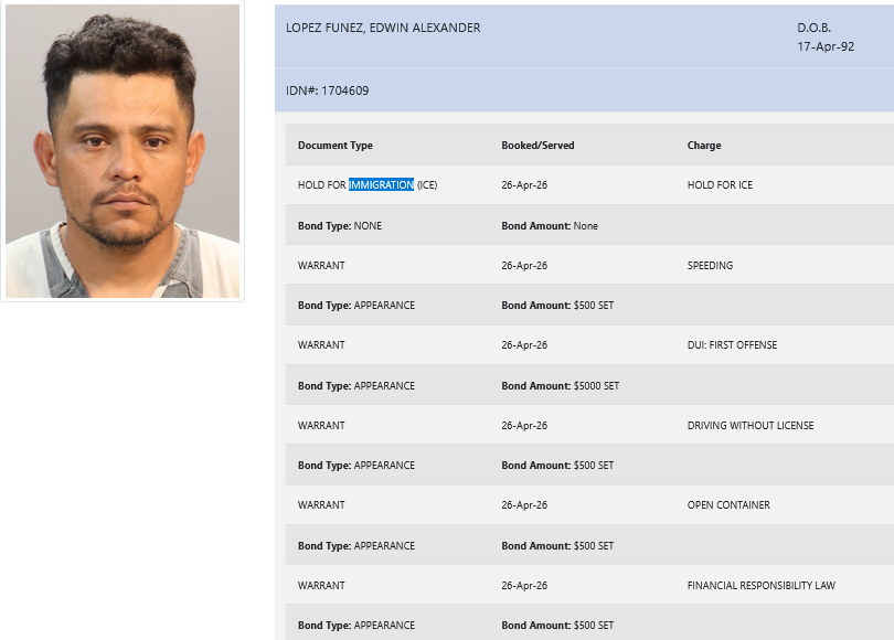 34-year-old Edwin Alexander Lopez Funez – arrested April 26