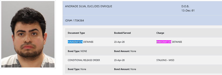 34-year-old Euclides Enrique Andrade Silva – arrested April 23