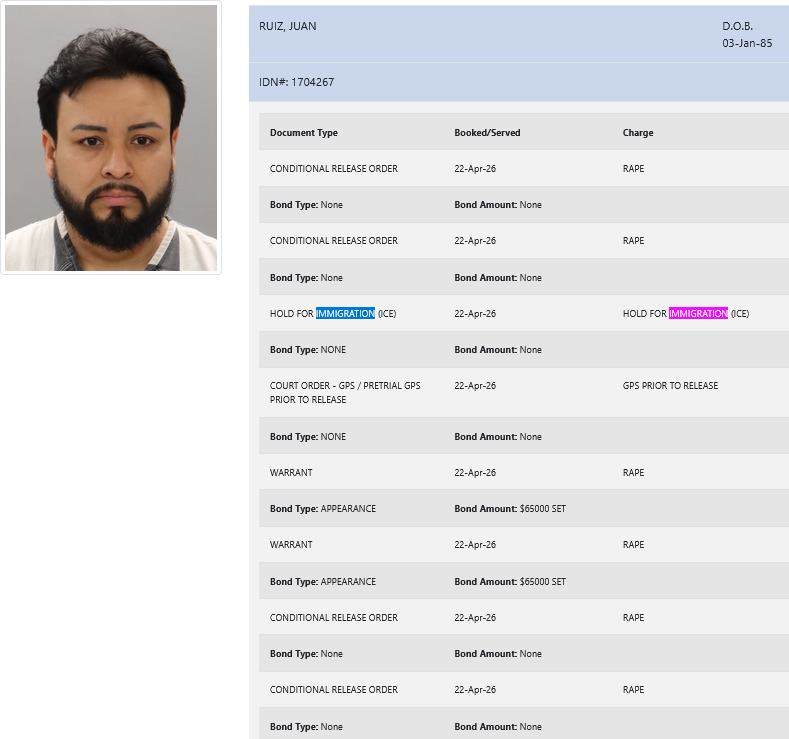 - Ruiz was charged with multiple counts of rape. He was booked on a $130,000 total bond.