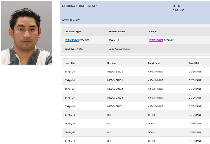 29-year-old Leonel Jiminez Cardona – arrested April 24