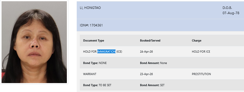 Ramirez, Zheng, and Li were arrested in conjunction with an undercover operation that took place from April 21-22 in a human trafficking operation by the Tennessee Bureau of Investigation.