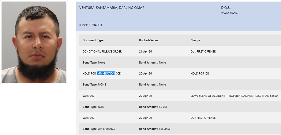 29-year-old Darling Omar Ventura-Santamaria – arrested April 20