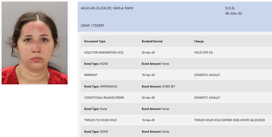 24-year-old Karla Aguilar-Elizalde – arrested April 20