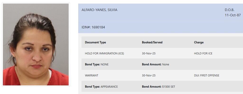 In Knox County, 38-year-old Silvia Alfaro-Yanes was arrested on November 30 and charged with DUI: first offense. She was booked on a $1500 bond.